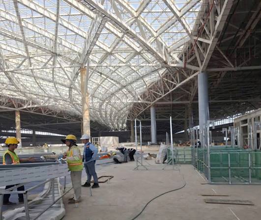 Công nhân đang thi công nhà ga hành khách Cảng hàng không quốc tế Long Thành tạo động lực cho mục tiêu tăng trưởng 10%