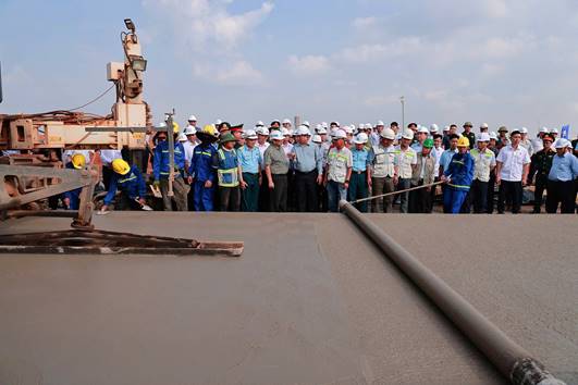 Cùng đi với Thủ tướng có Bộ trưởng Bộ Xây dựng Trần Hồng Minh, lãnh đạo các bộ ngành, cơ quan Trung ương và địa phương. Thủ tướng đã đến khu vực thi công đường cất hạ cánh thứ 2 tại sân bay; sau đó tiếp tục di chuyển đến khu vực thi công nhà ga sân bay để kiểm tra hiện trạng và nghe báo cáo kết quả thi công cũng như tiến độ thực hiện.
