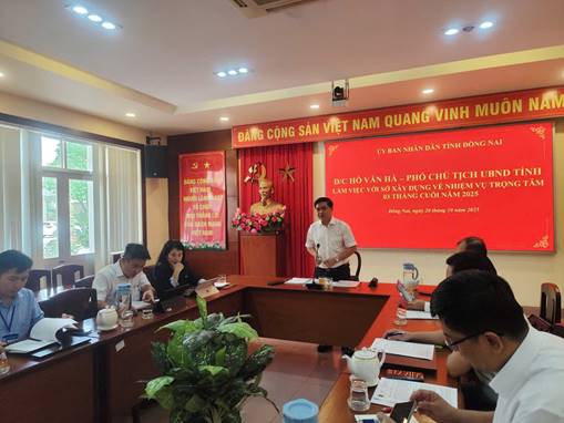 Sáng 20/10/2025, tại Sở Xây dựng tỉnh Đồng Nai, Phó Chủ tịch UBND tỉnh Hồ Văn Hà chủ trì buổi làm việc với Sở Xây dựng, tập trung triển khai các nhiệm vụ trọng tâm trong 3 tháng cuối năm 2025. Buổi làm việc có sự tham dự của Phó Giám đốc Sở Nội vụ Đặng Thanh Hoàng, Phó Giám đốc phụ trách Ban Quản lý Dự án Đầu tư Xây dựng tỉnh Đinh Tiến Hải, Giám đốc Sở Xây dựng Nguyễn Anh Tuấn cùng các Phó Giám đốc và lãnh đạo các phòng, đơn vị trực thuộc Sở.