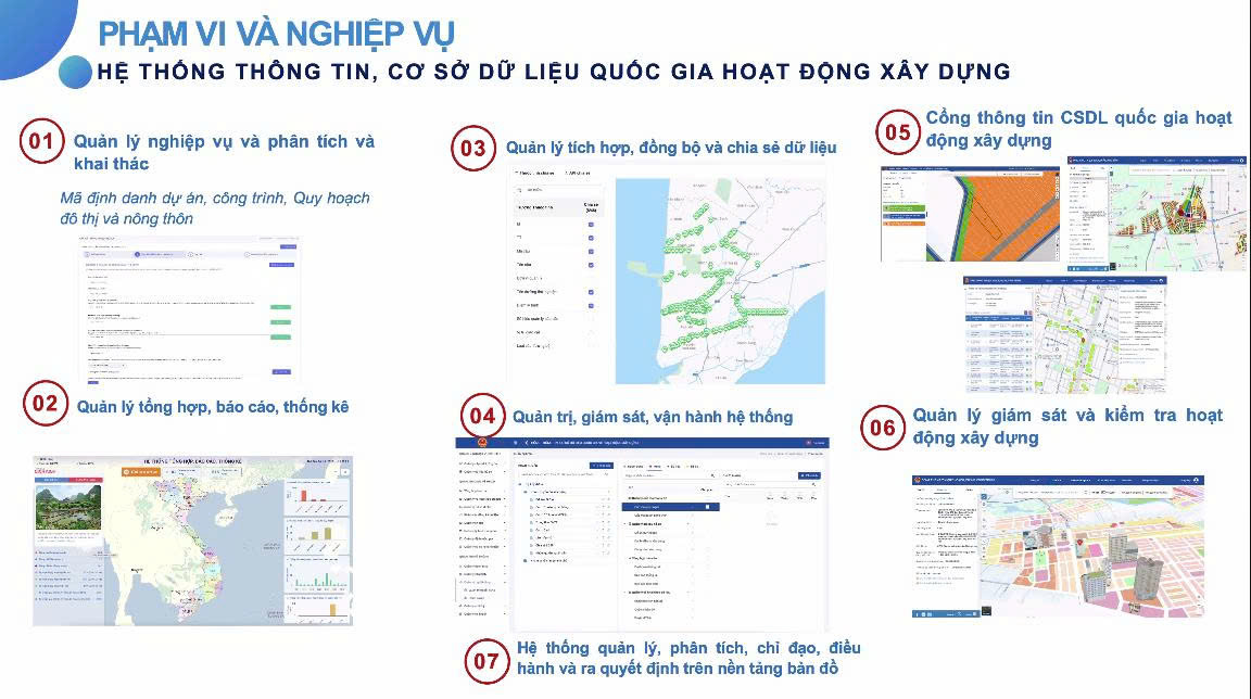 Theo báo cáo của Trung tâm Công nghệ thông tin – Bộ Xây dựng và đơn vị phối hợp triển khai VNPT, hệ thống sẽ được thực hiện theo mô hình triển khai tập trung, với các nội dung chính: Khảo sát và chuẩn hóa dữ liệu (Khảo sát tài khoản thụ hưởng, cơ cấu tổ chức của Bộ và các Sở Xây dựng, Cung cấp thông tin theo biểu mẫu; Khảo sát dữ liệu thủ tục hành chính đang được tiếp nhận và xử lý); Cài đặt & nhập dữ liệu hệ thống; Tích hợp, liên thông dữ liệu, Hệ thống sẽ kết nối – liên thông trực tiếp với: Cổng dịch vụ công Quốc gia; Cơ sở dữ liệu Quốc gia về dân cư; Cơ sở dữ liệu quốc gia về hoạt động xây dựng; Các phần mềm chuyên ngành thông qua bộ chuẩn API do Bộ Xây dựng công bố. Theo đó các địa phương cần hoàn thành trước 30/12/2025 như: Hoàn tất khảo sát tài khoản, phân quyền và danh mục TTHC; Chuẩn hóa dữ liệu thủ tục, số hóa hồ sơ mẫu; Cử cán bộ tham gia đào tạo đầy đủ theo kế hoạch Bộ Xây dựng.
