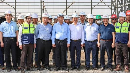 Ủy viên Trung ương Đảng, Bộ trưởng Bộ Xây dựng Trần Hồng Minh cùng với Tỉnh ủy viên, Phó Chủ tịch UBND tỉnh Đồng Nai Hồ Văn Hà và các đơn vị liên quan trên công trường Dự án Sân bay Long Thành