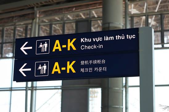 Biển hướng dẫn 4 thứ tiếng tại khu vực làm thủ tục check-in nhà ga hành khách sân bay Long Thành.