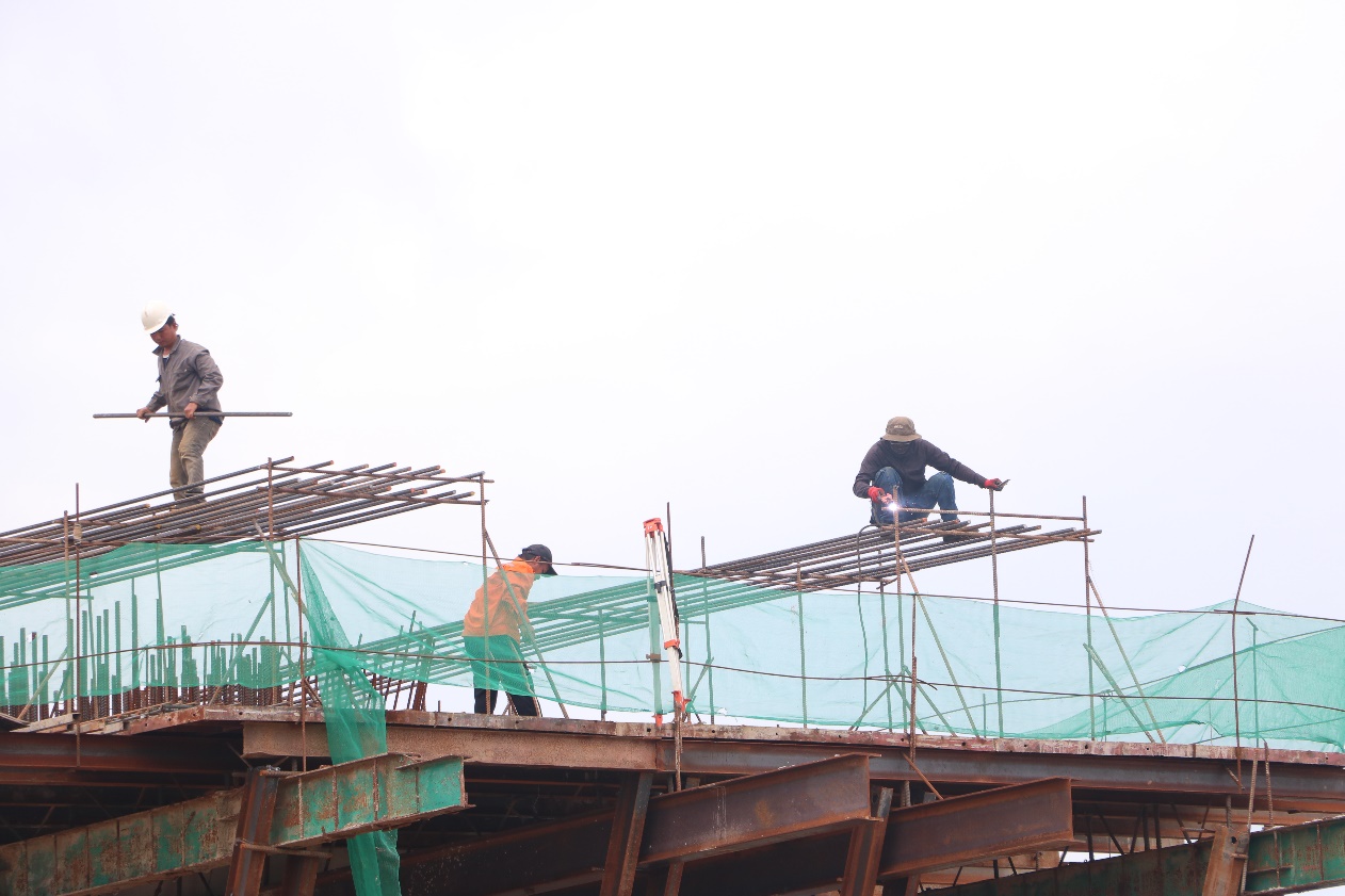 Công nhân tập trung thi công kết cấu cầu trên đại công trường cao tốc Biên Hòa – Vũng Tàu
