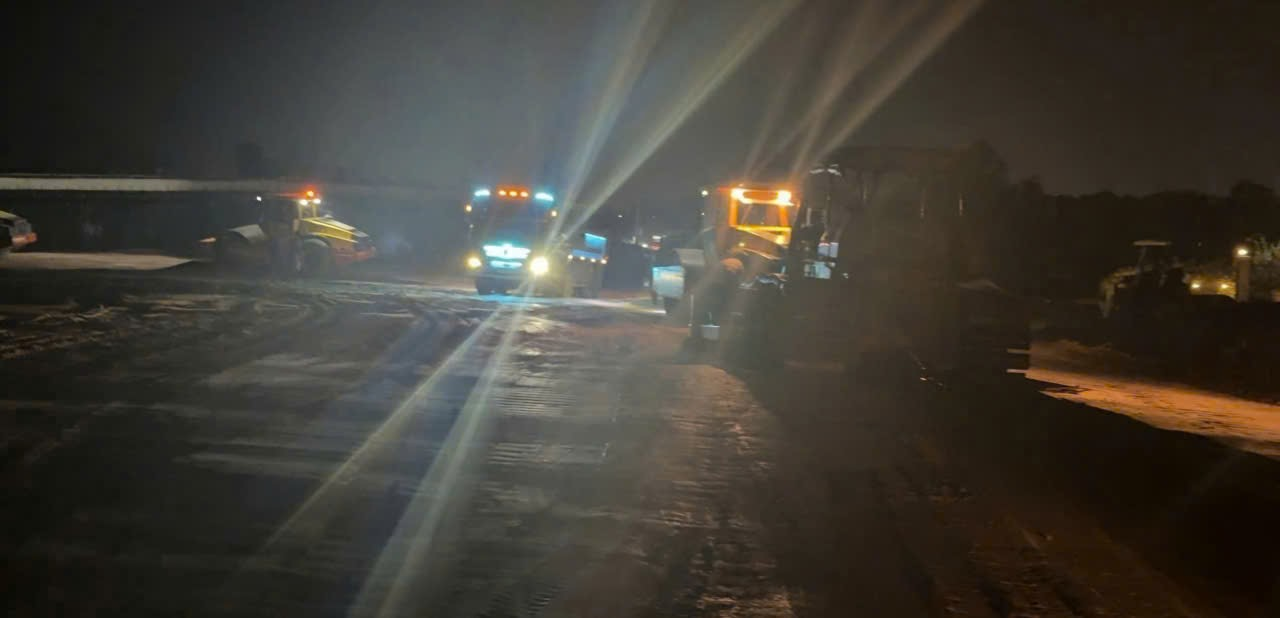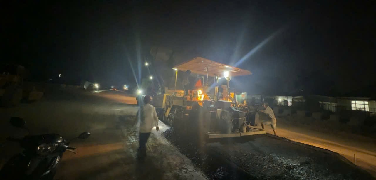 Công nhân và máy móc hối hả trên công trường cao tốc về đêm