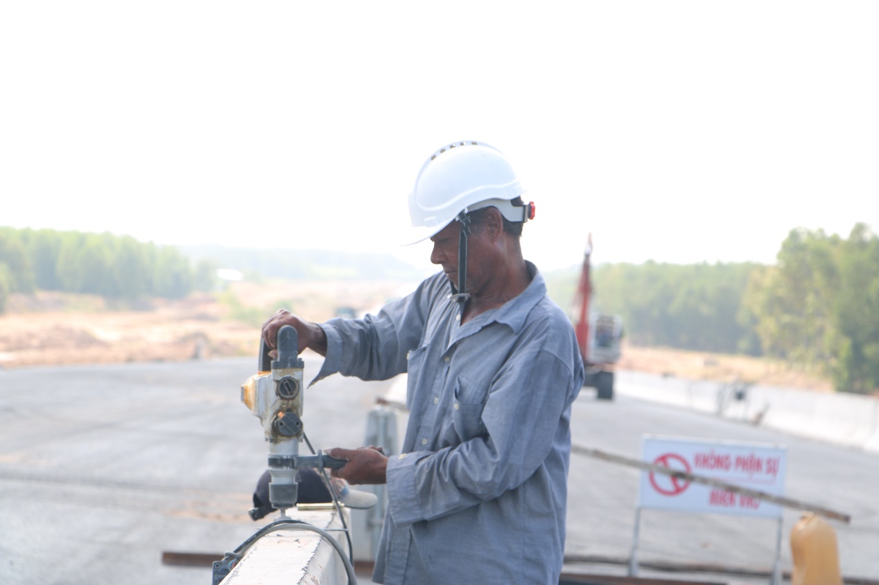 Hình ảnh công nhân đang miệt mài làm việc trên đại công trường Vành đai 3