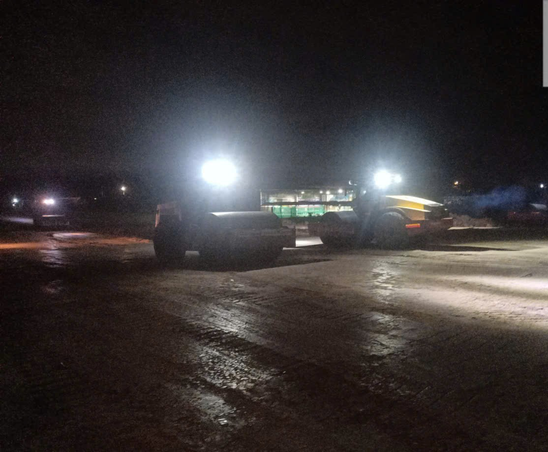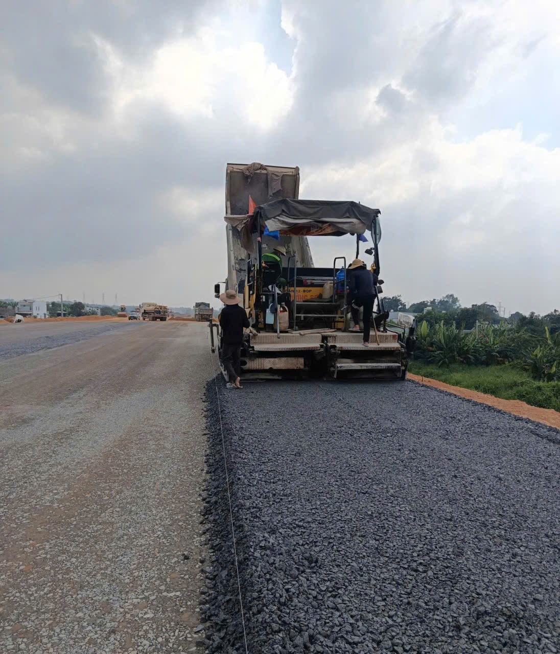 Song song đó, các tổ công nhân khẩn trương làm sạch bề mặt, thổi bụi, chuẩn bị kỹ lưỡng cho công đoạn thảm nhựa tiếp theo. Việc tổ chức thi công khoa học, liên hoàn giữa các mũi thi công giúp công trình duy trì nhịp độ ổn định, đồng thời bù đắp tiến độ đã bị ảnh hưởng trong thời gian mưa kéo dài trước đó.