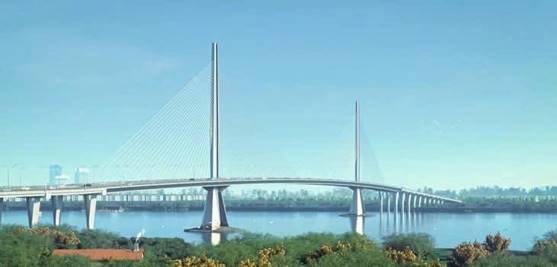 Phối cảnh cầu Long Hưng được thiết kế như hình bảo kiếm vươn thẳng lên bầu trời