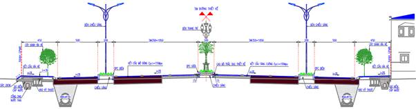 Mặt cắt ngang đoạn 2 Từ Km1+300 đến cuối tuyến