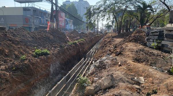 Tuyến cống thoát nước mưa thi công trên tuyến