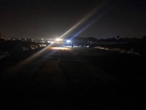 Ban đêm công nhân đang hoàn thiện cốt thép và chuẩn bị các công đoạn kỹ thuật để thi công bê tông mặt đường Dự án nâng cấp đường tỉnh 25B