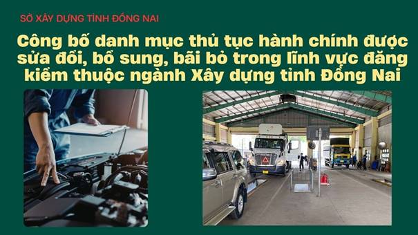 <h1>Công bố danh mục thủ tục hành chính được sửa đổi, bổ sung, bãi bỏ trong lĩnh vực đăng kiểm thuộc ngành Xây dựng tỉnh Đồng Nai</h1>